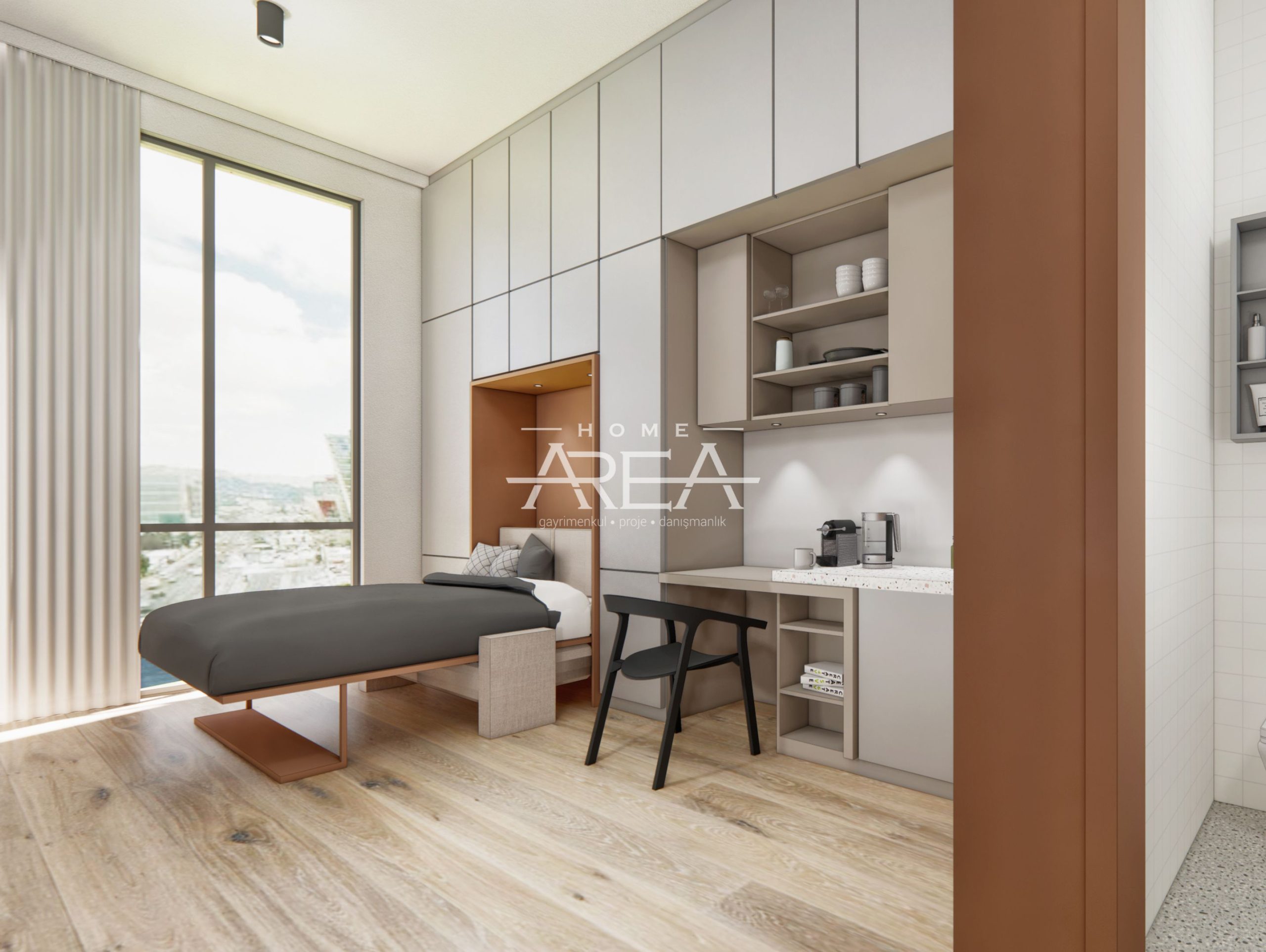 The Co-Living concept in Turkey is builded for the first time. Here the entire project area and buildings belong to all the tenants. It consists of 227 luxurious, modern, ready-to-move furnished 1+1 apartments and studio apartments, with electrical equipment, built-in kitchen and other technology.